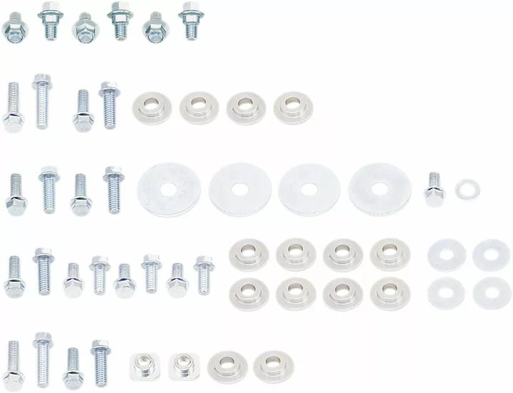 Inkluderer alle fabriksreplikationer og bøsninger til frontfender, bageste fender, frontnummerplade, gaffelvagter, sæde, sidepaneler og radiatorhyller i et sæt