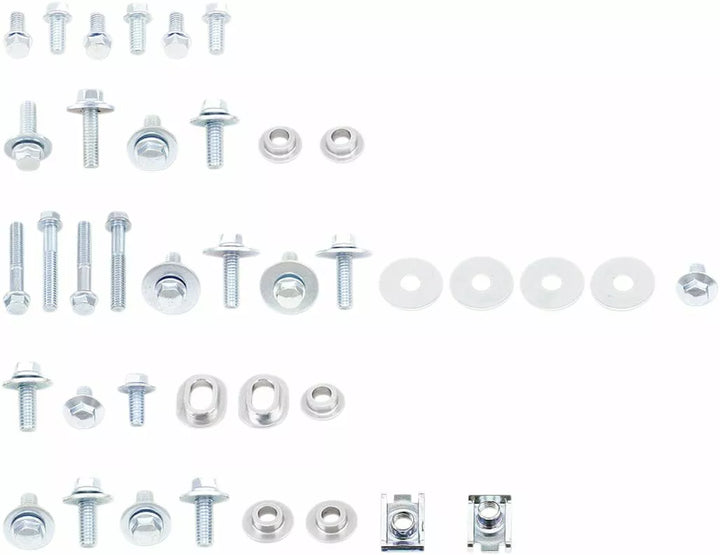 Inkluderer alle fabriksreplikationer og bøsninger til frontfender, bageste fender, frontnummerplade, gaffelvagter, sæde, sidepaneler og radiatorhyller i et sæt