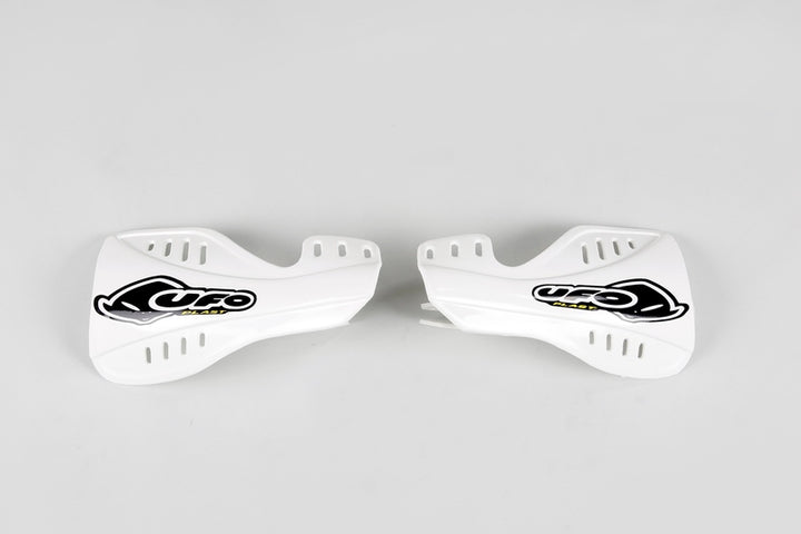 UFO plastics er kendt for deres kvalitet og deres modstandsdygtighed over for off-road brug. De er designet som OEM plast og er nemme at montere. De bruges af dagens MXGP top hold og tidligere verdensmestre. MX type håndbeskyttere lavet af sprøjtstøbt plastik monteringssæt inkluderet lavet i Italien Farve: Hvid
