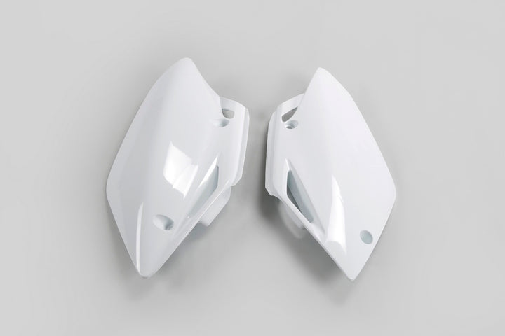 UFO-plast er kendt for deres kvalitet og deres modstand mod off-road brug. De er designet som OEM -plastik og er lette at montere. De bruges af dagens MXGP -tophold og danner verdensmestre. OEM -typemade fra UV, Choc og Torsion Resistent Injicered Plastic Color: White