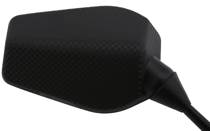 V-Parts tilbyder både et bredt udvalg af universelle spejle og godkendte sidespejle, som er specielt udviklet til OE cykelapplikationer. Montering: Fairing Farve: Kulstof Afstand mellem bolte: 48 mm Fastgørelse: Trous Homologation: CE godkendt Inkluderer blinklys: Nej Materiale: Plast Spejl højde (mm): 90.0 Spejl bredde (mm): 105.0 Pakning: à l'unité Position: Højre Form: Rektangel