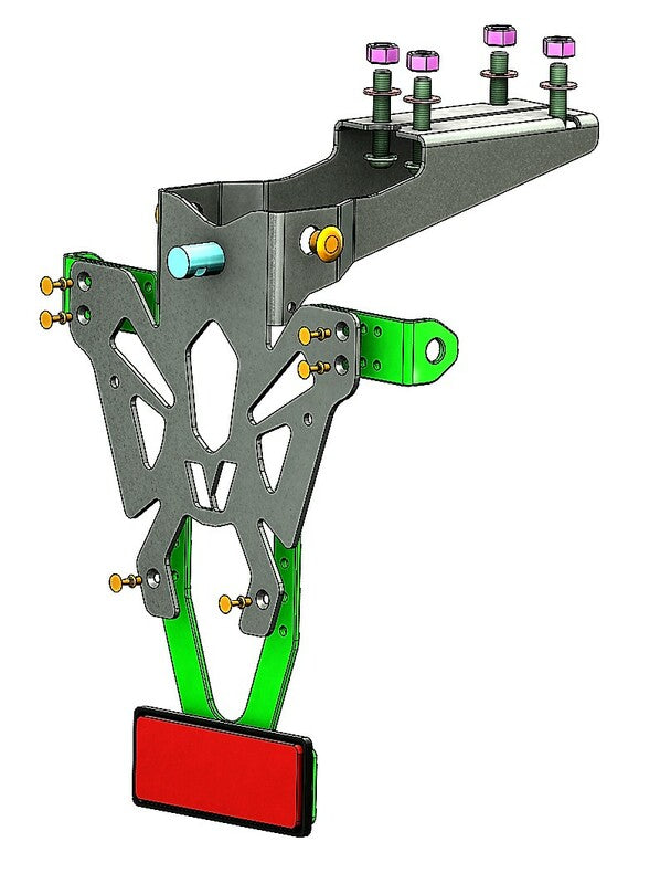 V PARTS nummerpladeholder er fremstillet i Frankrig. Diskret og perfekt udført, de er specifikt udviklet til den vedhæftede cykelapplikationsliste. 2 mm tynd men robust stål nummerpladeholder Sort epoxymaling CNC-fremstillet – laserskåret: præcis finish Huller til fastgørelse af nummerplade, blinklys og nummerpladebelysning Fremstillet i Frankrig Indhold: Gadelegal nummerpladebelysning, EU-certificeret Justerbar reflektorplade Reflektor, EU-certificeret Flere oplysninger: Optimeret og diskret kabelgennemgang Hurtig & nem montering Justerbare blinklysbeslag Passer til EU-plader Blinklysafstand: 170 til 220 mm Farve: Sort Homologation: CE-homologeret Materiale: Stål
