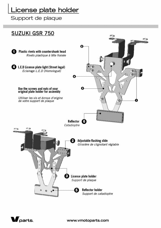 V PARTS nummerpladeholder er fremstillet i Frankrig. Diskret og perfekt udført, de er specifikt udviklet til den vedhæftede cykelapplikationsliste. 2mm tynd, men robust stål nummerpladeholder Sort epoxy maling CNC Fremstillet – laser skåret: præcis finish Huller til at fastgøre nummerplade, indikatorer og nummerpladebelysning Fremstillet i Frankrig Indhold: Gade lovlig nummerpladebelysning, EU certificeret Justerbar reflektorplade Reflektor, EU certificeret Mere info: Optimeret og diskret kabelgennemgang Hurtig & nem montering Justerbare indikatorbeslag Passer til EU-plader Indikatorlys afstand: 170 til 220mm Farve: Sort Materiale: Stål