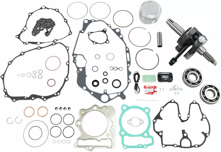 Kit inkluderer et premium-smedt stempelkit med lagerkomprimeringsforhold og en CAM-kæde af høj kvalitet, top- og bundendekomponenter er inkluderet til en komplet motoropbygning, krumtapaksel og stangmontering designet og inspiceret til aktivbeslag er også inkluderet i kittet