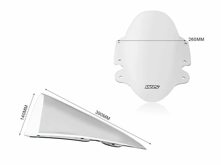 Forrude lavet ved hjælp af PMMA Plexiglas af høj kvalitet., Den irriterende turbulens på skuldrene og hjelmen vil blive elimineret, den større beskyttelse, der tilbydes af skærmen, passer perfekt til linjen på cyklen, hvilket giver den en endnu mere app