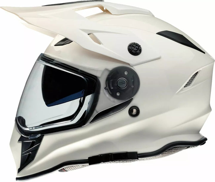 Dobbelt densitet EPS-foring for påvirkningsabsorption, injektionsstøbt polycarbonatskal er let, kompakt og stærk, fuldt aftagelig polyester fugtighedsvejr foring og kindpuder, alsidig design kan bruges med eller med ansigtsskærm gør hjelmen alsidig i alle lysforhold, ridsebestandigt, polycarbonatskind, justerbar og fjernet visor på hjelmen.