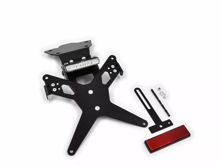 Licenspladeholderen er ekstremt holdbar og vejrbestandig., Sort pulverlakeret. , Nummerpladeholderen kan bruges til enhver form for nummerplade (175 mm bredde)., Ingen ændring af fairing kræves., Stepløs justering af rake -vinkel., Indikatorstøtte justerbar i 3 positioner. Plade., Specialindikatorlysmonteringer (solgt separat), der kræves til lagerindikatorlys., Kit inkluderer: 1 nummerpladeholder inkl. Montering Kit., LED -nummerplade Lys "E godkendt" inkl. Support., Baglys med støtte. Ansvarsfraskrivelse: Vigtigt: For brugen af denne nummerpladeholder med OEM -blinklys -signaler for Ducati -modeller (2015 - Til stede) er der behov for en speciel indehaver (Zieger -blinklys -adapter OE Duc. Del Europa Delnummer: 20301971. Sælgernummer: 10005790).