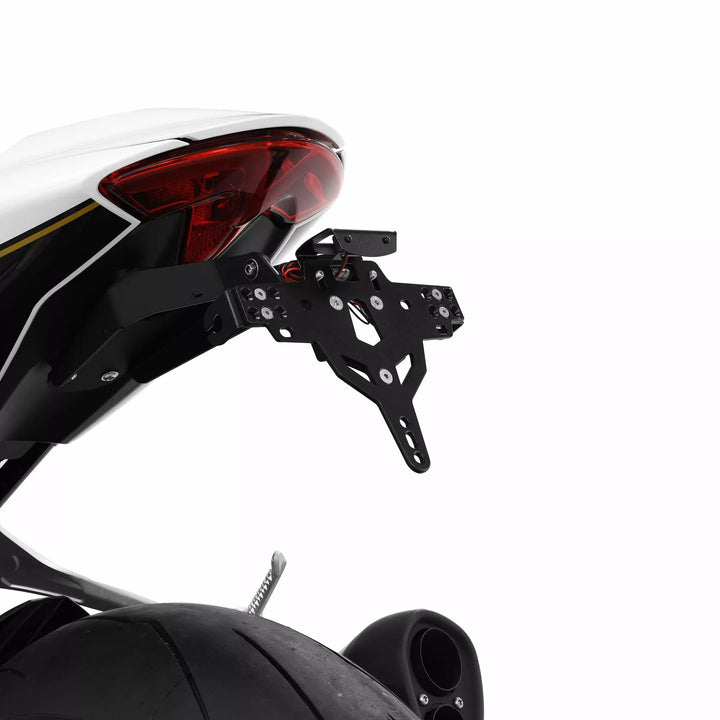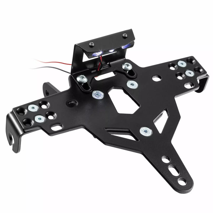 Licenspladeholderen er ekstremt holdbar og vejrbestandig., Sort pulverlakeret. , Nummerpladeholderen kan bruges til enhver form for nummerplade (175 mm bredde)., Ingen ændring af fairing kræves., Stepløs justering af rake -vinkel., Indikatorstøtte justerbar i 3 positioner. Plade., Specialindikatorlysmonteringer (solgt separat), der kræves til lagerindikatorlys., Kit inkluderer: 1 nummerpladeholder inkl. Montering Kit., LED -nummerplade Lys "E godkendt" inkl. Støtte. Af: Schweiz, Polen og Irland.